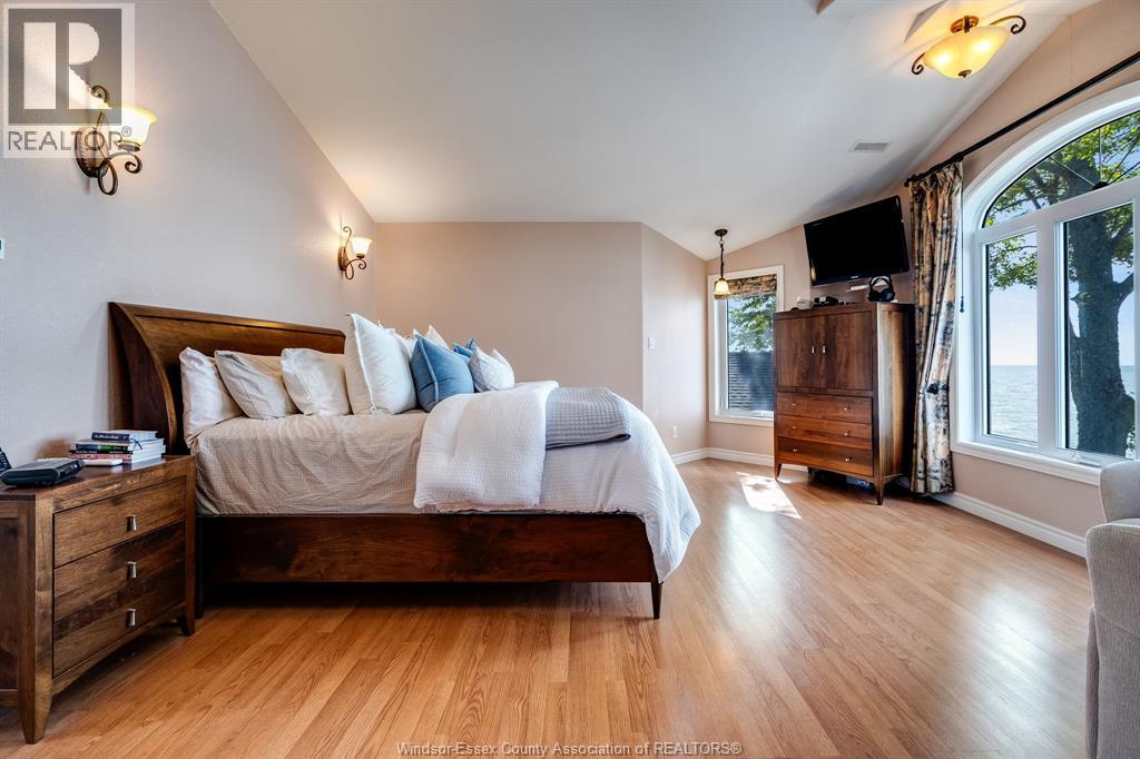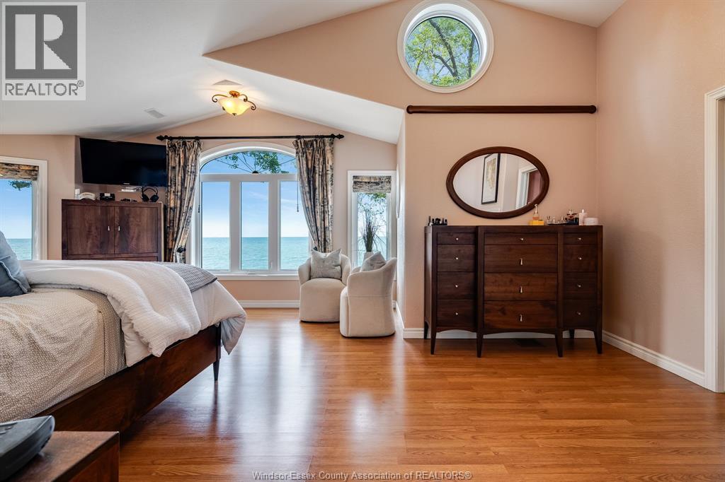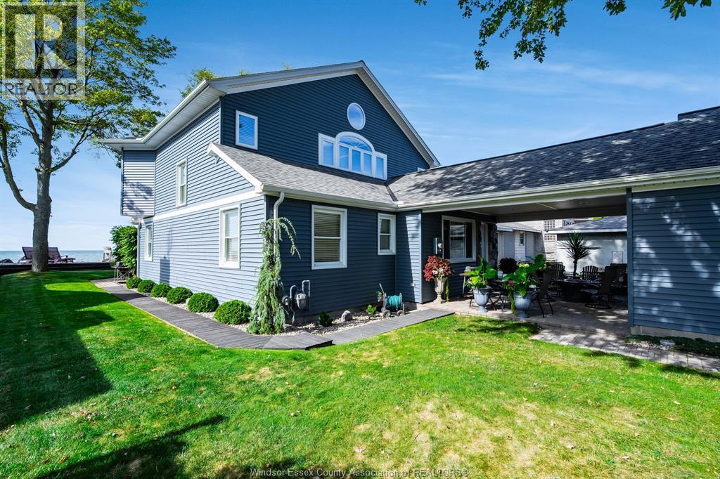 Waterfront living at its finest on Point Pelee Drive! This beautifully designed home showcases panoramic water views from the open-concept kitchen, dining, and living room, as well as from the main floor bedroom and the second-floor primary suite. The primary retreat features a spa-like 4-piece ensuite with a Bain Ultra air tub and a double-sided fireplace. Natural Gas radiant heated floors with multiple zones ensure year-round comfort, including in-floor radiant heating in the garage and also offers EV charging. Total reconstruction of mechanicals—including plumbing, electrical, and radiant in-floor heating—was completed in 2004, and all domestic plumbing is solid copper. For peace of mind, the property is protected by a concrete marine-anchored breakwall with additional armored stone protection. Major updates include siding, roof, and A/C within the last 5 years, plus an encapsulated crawlspace. Step out to your lakefront patio and take in breathtaking sunsets over the water. (id:4555)