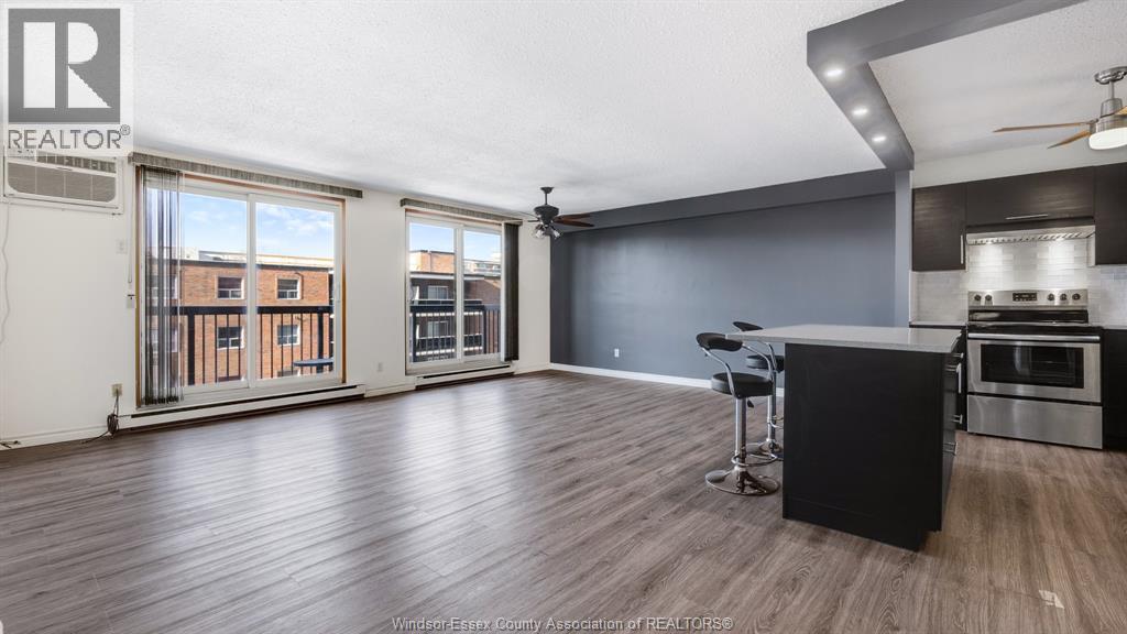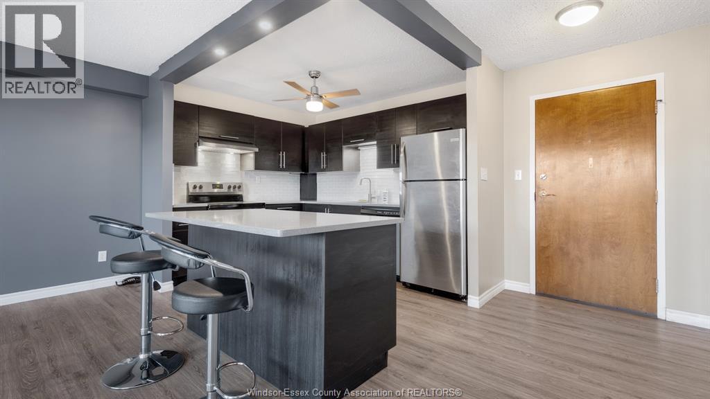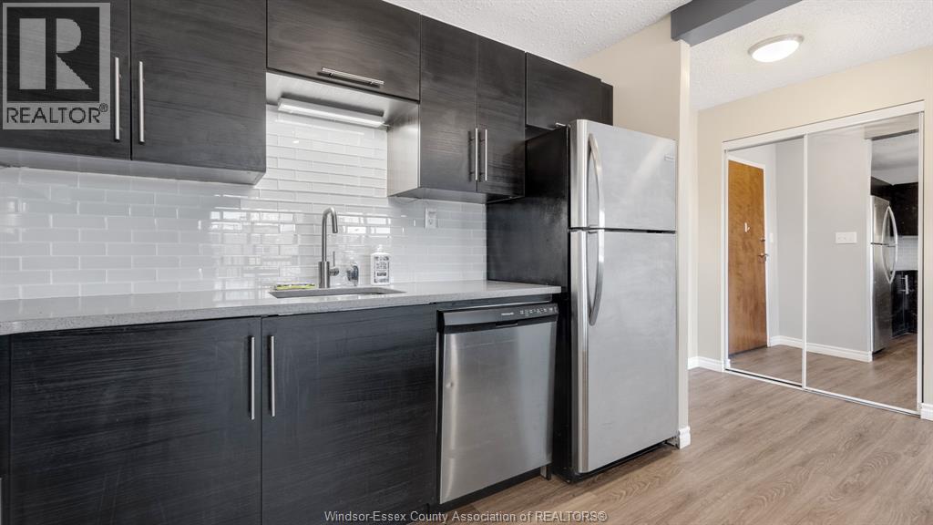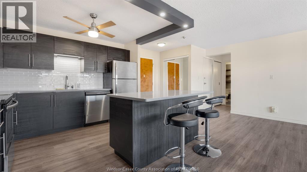 Bright and Spacious, fully renovated condo with indirect water views. This 5th floor condo offers a modern and open concept design, including Euro style kitchen cabinets and centre island with stone countertops and stainless steel appliance, laminate flooring, 4 pc bath and large bedroom and outdoor balcony. Available for lease March 1, 2026. Tenant pays an addt'l $150 per month toward utilities. Parking spots are available for rent from the condo corporation for an additional $30 per month. First and last months rent required. No Pets allowed, as per Condo By laws. Credit check and proof of income to be submitted with rental application. (id:4555)