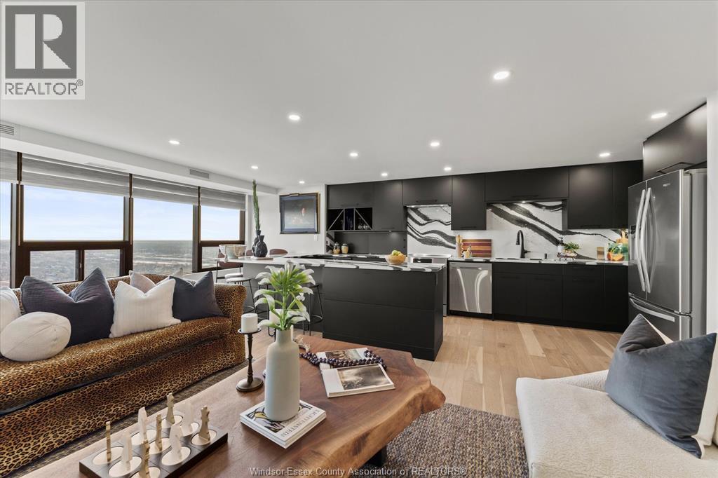 This trendy and stylish condo right in the heart of downtown Windsor,minutes from the US border and offers fabulous views from the 29th floor, stunning kitchen with centre island created by Wayne's Custom kitchen with quartz counters and top of the line appliances, newer flooring, lighting, newer beautiful electric linear fireplace ect....Seller has spent $150,000.00 with the last couple of years with many updates which must be viewed to appreciated. This unit was 2 bedroom and can easily be converted back. This condo is a pleasure to show! (id:4555)